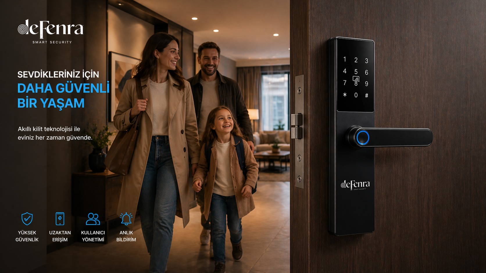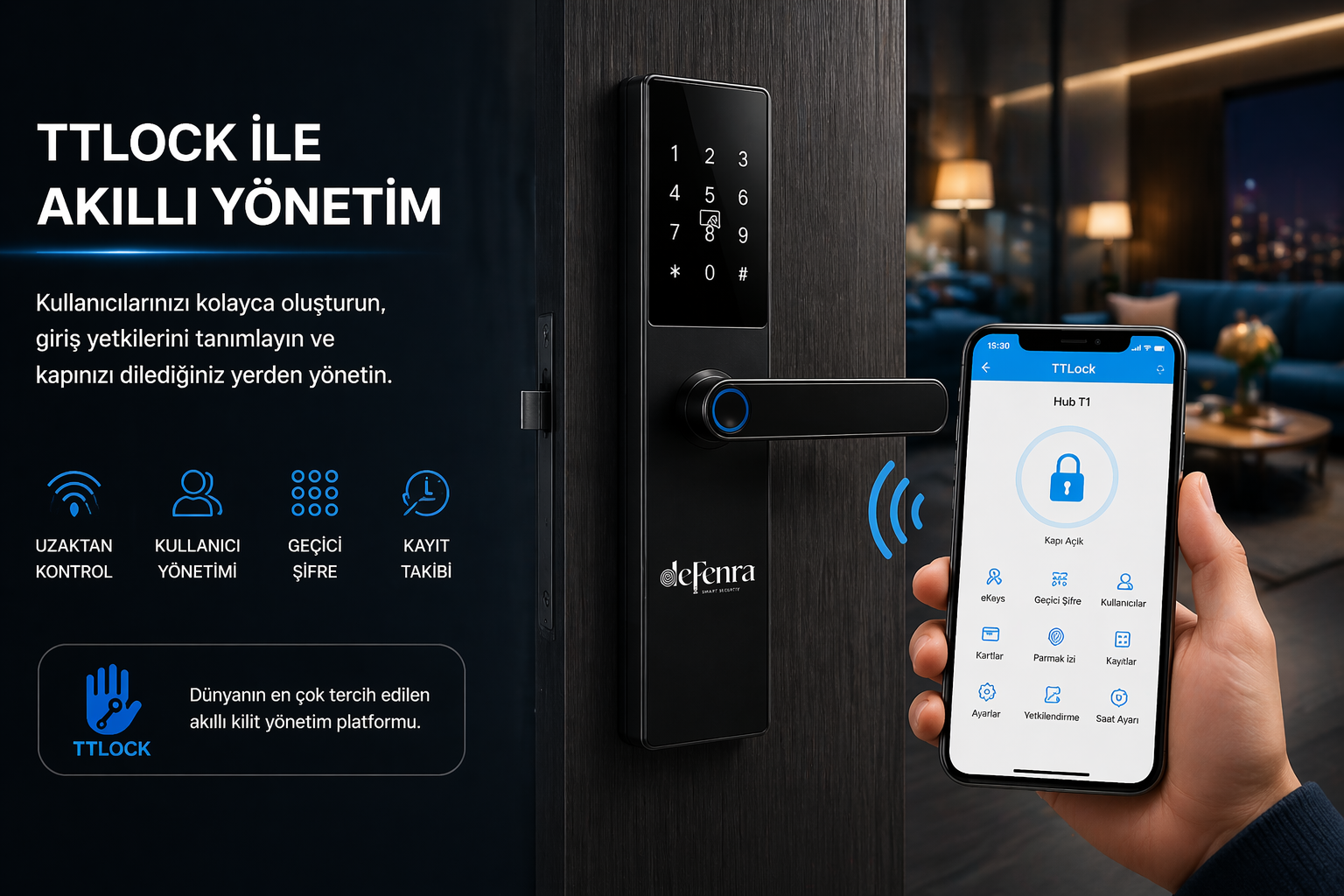 Defenra Hub T1, otel, apartman ve kiralık mülk kapıları için geliştirilen yeni nesil bir Defenra akıllı kilit modelidir. Bu ürün, TTLock tabanlı oda ve kullanıcı yönetimi avantajını güçlü güvenlik özellikleri ile bir araya getirir. Parmak izi, şifre, kart, mobil uygulama, anahtar gibi erişim seçenekleri sayesinde kullanıcıya günlük yaşamda esneklik sunar. Defenra markasının modern güvenlik yaklaşımına uygun olarak tasarlanan bu model, hem bireysel hem profesyonel kullanımlarda güvenlik hissini artırır. Alüminyum alaşım gövde yapısı, 280x65 mm ölçüsü ve AA pil altyapısı ile dengeli bir kullanım deneyimi sağlar. Özellikle ofis, apartman kullanım senaryolarında öne çıkan Defenra Hub T1, estetik görünüm ile akıllı kontrolü aynı üründe buluşturur. Defenra’nın yalnızca kapıyı açan değil, yaşam alanını daha kontrollü, daha güvenli ve daha konforlu hale getiren ürün anlayışını doğrudan yansıtır.